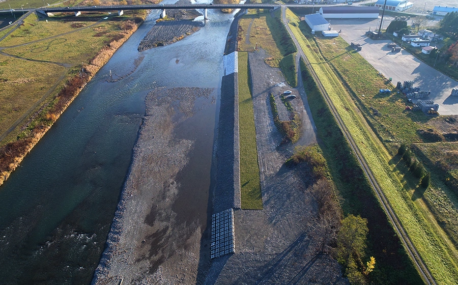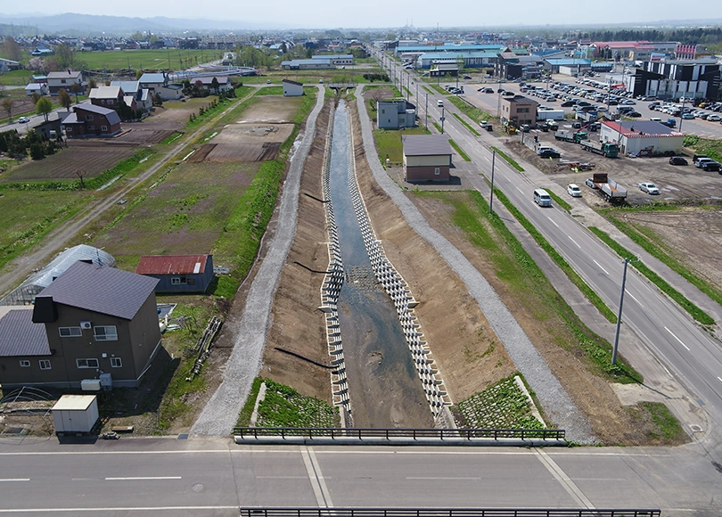 洪水防止や環境保護など、私たちの生活を守る重要な工事です。防災、減災で地域住民の命を守るほか、水辺に住む生物の生育や繁殖環境の保全にも配慮し、魅力的なまちづくりにも寄与しています。